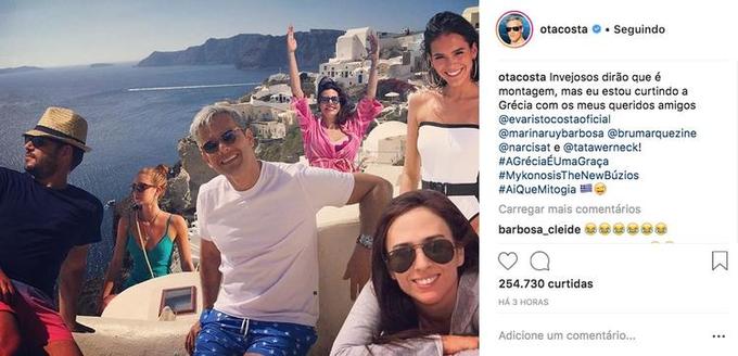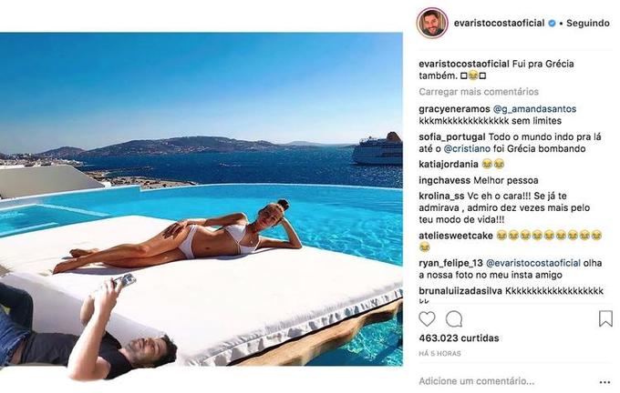 Tatá Werneck e David Brazil fizeram montagens nas fotos de Bruna Marquezine, dizendo estar também na Grécia. Evaristo Costa apareceu deitado em uma foto de Marina Ruy Barbosa.