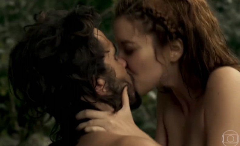 Na sequência, Branca e Xavier se beijam, nadam e acabam transando no riacho sem perceberem que estavam sendo vistos por Gaspar (Romulo Estrela).