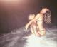 O ator publicou uma foto ousada em que aparece no mar com a esposa e descreveu: "A felicidade".