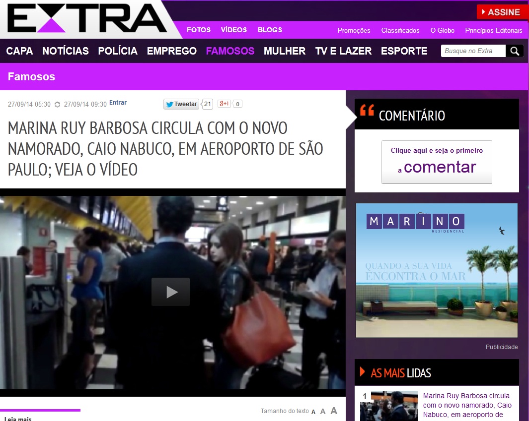 Marina Ruy Barbosa é rápida no gatilho. Depois de terminar com Klebber Toledo em julho deste ano, a ruivinha não quis saber de ficar sozinha e já engrenou um romance com o empresário carioca Caio Nabuco, ex de Mariana Ximenes.