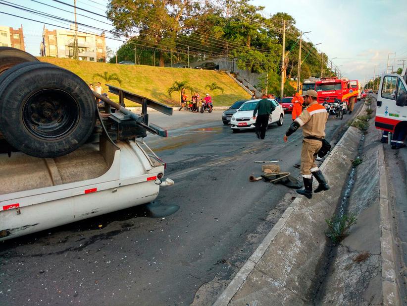 Manaus/AM - No fim da tarde desta segunda-feira (15), por volta das 17h30, um caminhão capotou na avenida Torquato Tapajós, bairro Santa Etelvina, Zona Norte da capital. O condutor do veículo Daniel Cleiton da Silva Souza, 37, ficou preso às ferragens após o veículo de placas JWJ-8360 virar sobre a pista.