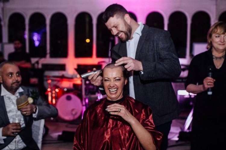Noiva raspa cabeça durante casamento para homenagear marido com câncer