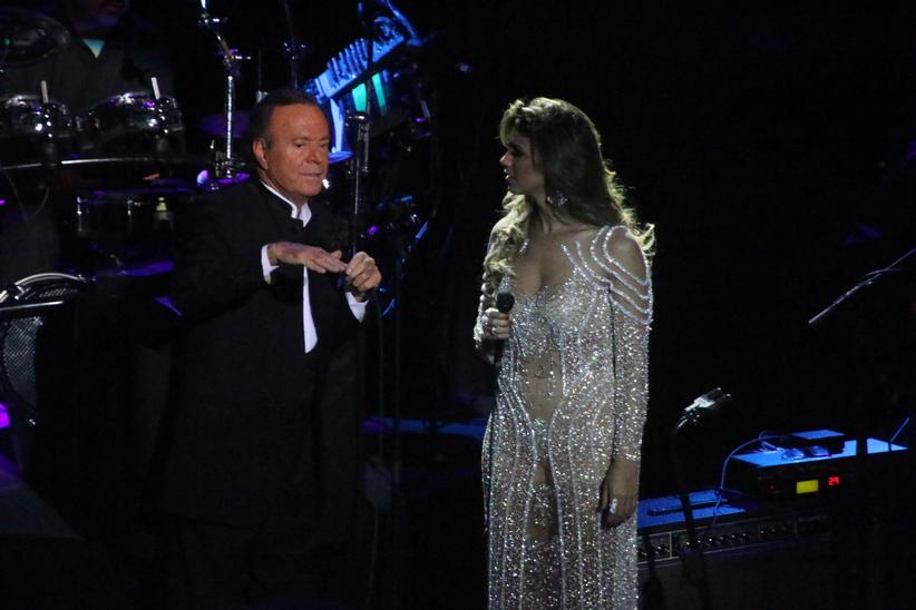 Durante a apresentação Julio Iglesias deu inesperadamente um selinho na cantora que correspondeu sem cerimônias.