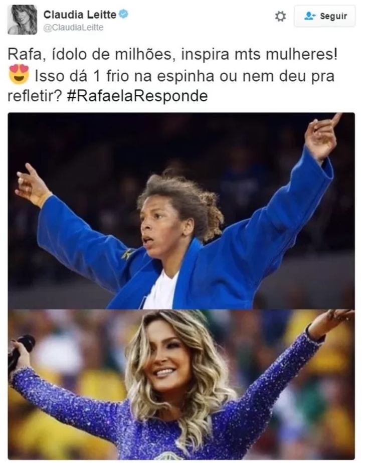 Claudia Leitte está sendo criticada na internet após publicar uma montagem dela com a judoca Rafaela Silva, que ganhou medalha de ouro nas olimpíadas.
