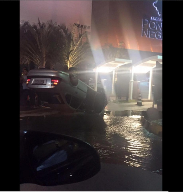 Motorista capota carro dentro do estacionamento do shopping Ponta Negra