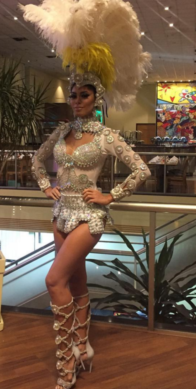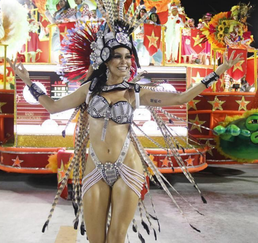 A amazonense desfilou em nada menos que duas escolas do Rio de Janeiro, a Acadêmico da Rocinha e Vila Isabel, além de uma em São Paulo, a Imperador de Ipiranga, e precisou de muita energia para encarar a ‘maratona’ na avenida.