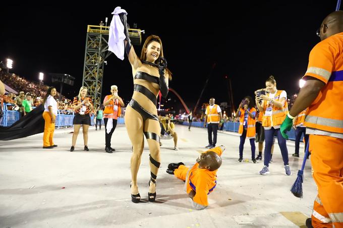 Na Sapucaí a atriz, na companhia do gari-passista Renato Sorriso, deu uma palhinha durante um dos intervalos da segunda noite.