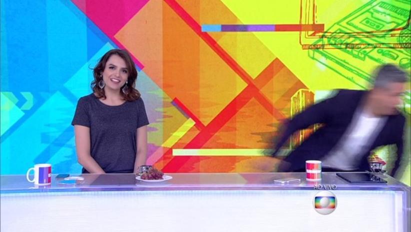 "Ao som de Cauby Peixoto, encerramos a rádio Vídeo Show por hoje. Agradecemos a sua presença e voltaremos amanhã com mais Vídeo Show ao vivo com Monica Iozzi e Otaviano Costa. Miguel Falabella vem agora... Klebber Toledo!", disse, e saiu correndo.