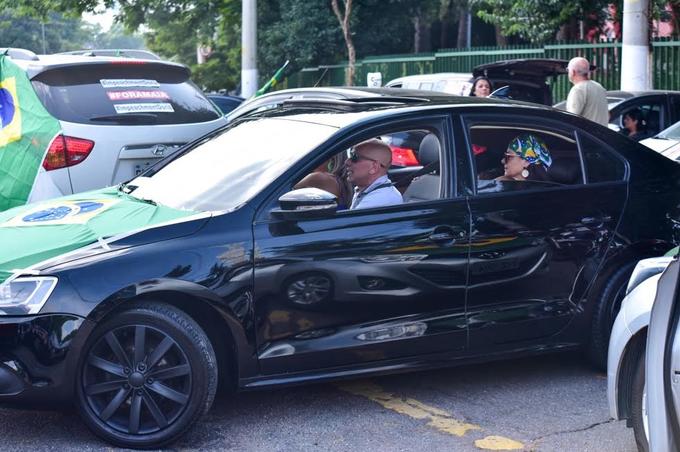 Em seu carrão estampando uma bandeira do Brasil, o ex-participante do grupo Polegar saiu acompanhado de duas mulheres usando camisa da CBF e adereços verde e amarelo. Em um certo momento, Rafael saiu pelo teto solar de seu veículo e registrou a movimentação.