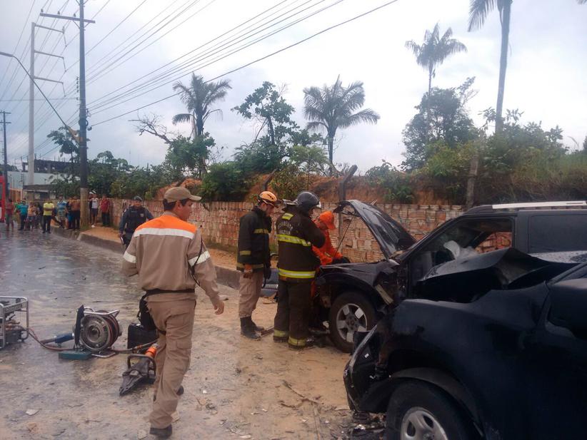 Os bombeiros foram acionados para remover a vítima que estava encarcerada. Após ser retirada, a pessoa foi conduzida pelo Serviço de Atendimento Móvel de Urgência (Samu) ao HPS Delphina Aziz.Os condutores dos outros veículos não tiveram ferimentos graves. Houve somente perda material nos veículos envolvidos no acidente.