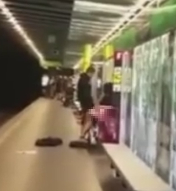 Sem se intimidar com a movimentação, o casal abaixou as calças e praticou o ato em um dos bancos da estação.