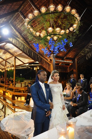O casal uniu matrimônio em uma cerimônia realizada para aproximadamente 500 pessoas, na casa de festas Lajedo, em Vargem Pequena na zona oeste carioca.
