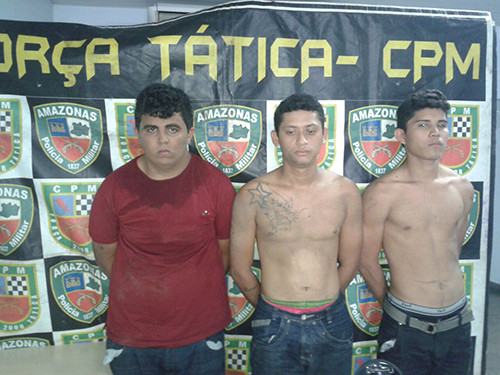 Manaus/AM - Equipe da viatura 1891, da Força Tática, prendeu três ladrões que, usando o Corsa branco, de placas JWI-2809, fizeram vários assaltos na noite de terça-feira, 3, em bairros da zona Sul.