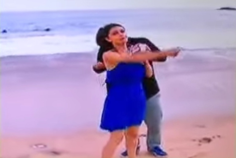 O problema foi que a parte de cima do biquíni de Bernardita saiu e a cena foi transmitida ao vivo. Por sorte, ela estava de costa para as câmeras e não mostrou os seios.