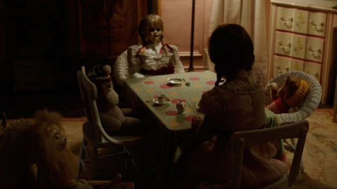 Vários anos após a trágica morte de sua filhinha, um fabricante de bonecas e sua esposa abrigam em sua casa uma freira e várias meninas de um orfanato que foi fechado, e logo se tornam alvos da possuída criação do fabricante de bonecas, Annabelle.