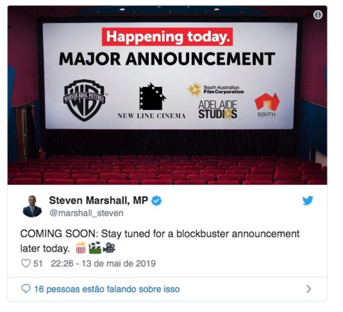 "Mortal Kombat será a maior produção cinematográfica da história de South Australia", afirmou o premiê.