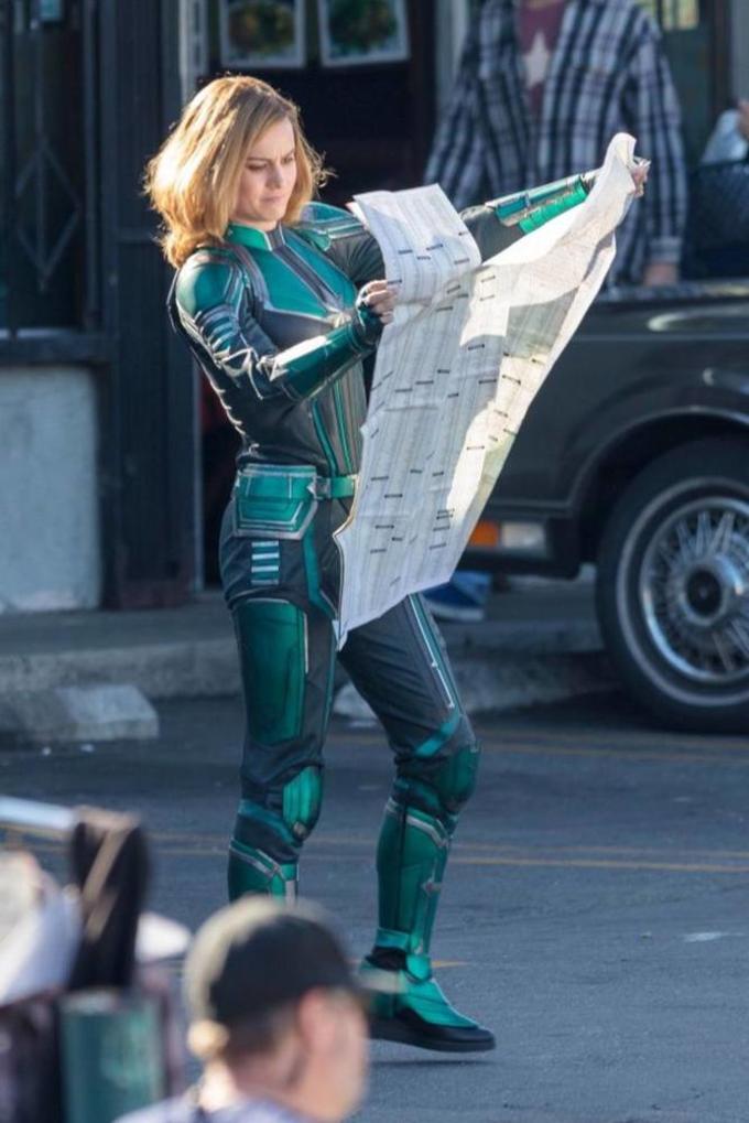 Brie Larsson no set de Capitã Marvel. Foto: Marvel Studios