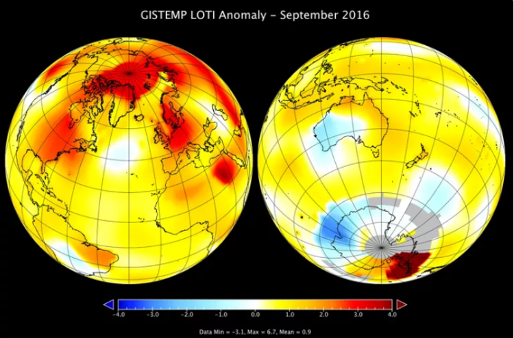 O último mês de setembro foi o mais quente em 136 anos afirmou os registros da Nasa.