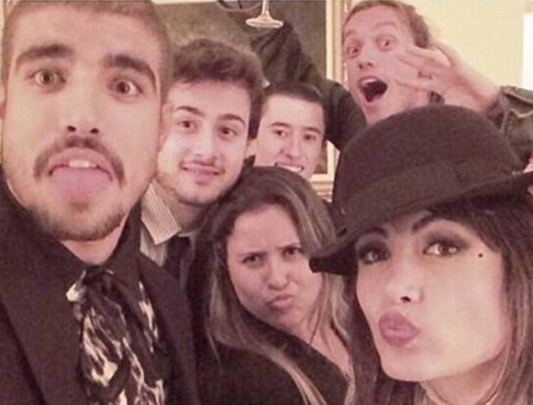 O casal de atores, que trouxe para a realidade o romance vivido na ficção, fez uma série de fotos "selfie" ao lado de amigos. Caio, inclusive, já exibe o novo cabelo raspado, enquanto Maria usa um chapéu completando o look da festa.