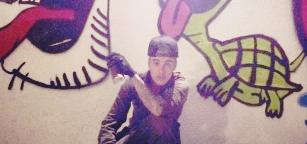 Depois que começou sua fase 'rebelde', Bieber passou a colecionar hobbies diferentes. A sua turnê 'Believe' ficou marcada pelo piche. O rapaz saiu pichando a parede de vários países e publicando as fotos no Instagram. Apesar de que geralmente, ele pedia antes a permissão para fazer o desenho, posteriormente o ato causava confusão com as autoridades. No Brasil, por exemplo, ele chegou a ser procurado pela polícia após pichar a parede de um hotel no Rio de Janeiro. O seu segurança foi quem deu explicações à polícia. Na Austrália, o prefeito Tom Tait não quis saber de brincadeira e o mandou apagar tudo.
