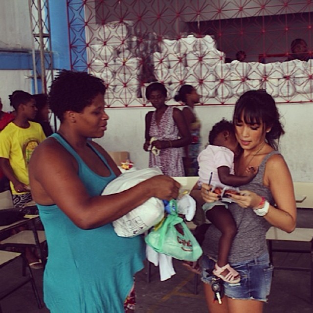 "De uma forma linda encerrei meu dia na Cidade de Deus com um mais um inesquecivel sorriso no meu coração! Muito obrigada meus amigos!!! Juntos hj alimentamos 1.308 famílias!!! Amo vcs!!! Amém!".