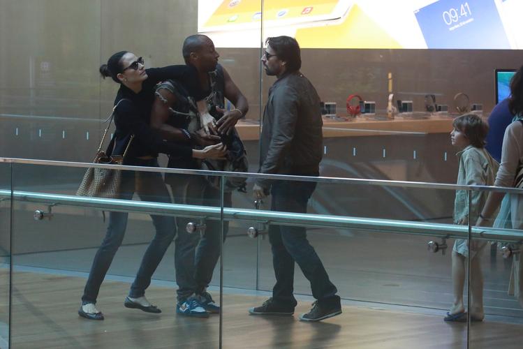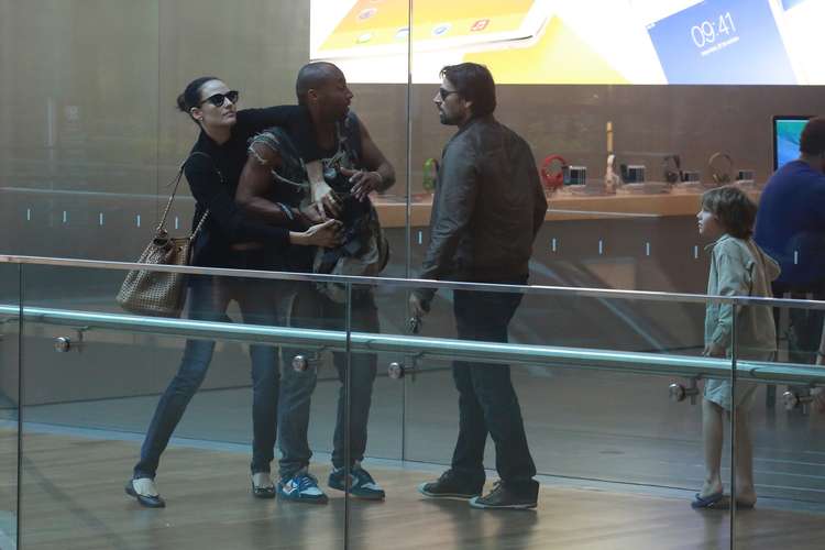 O ator Murilo Rosa se estressou com um paparazzo durante um passeio com a mulher Fernanda Tavares e filho, no Shopping do Rio de Janeiro.