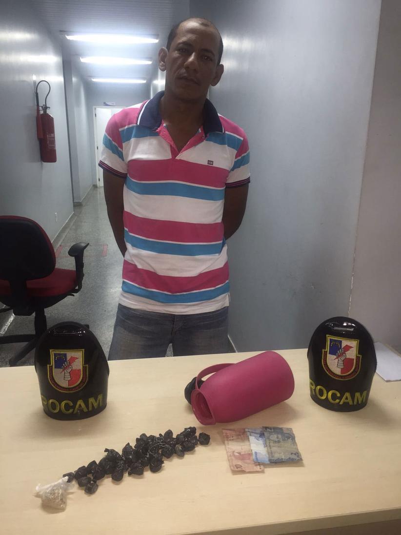 Rocam prende homem que escondia droga em garrafa térmica