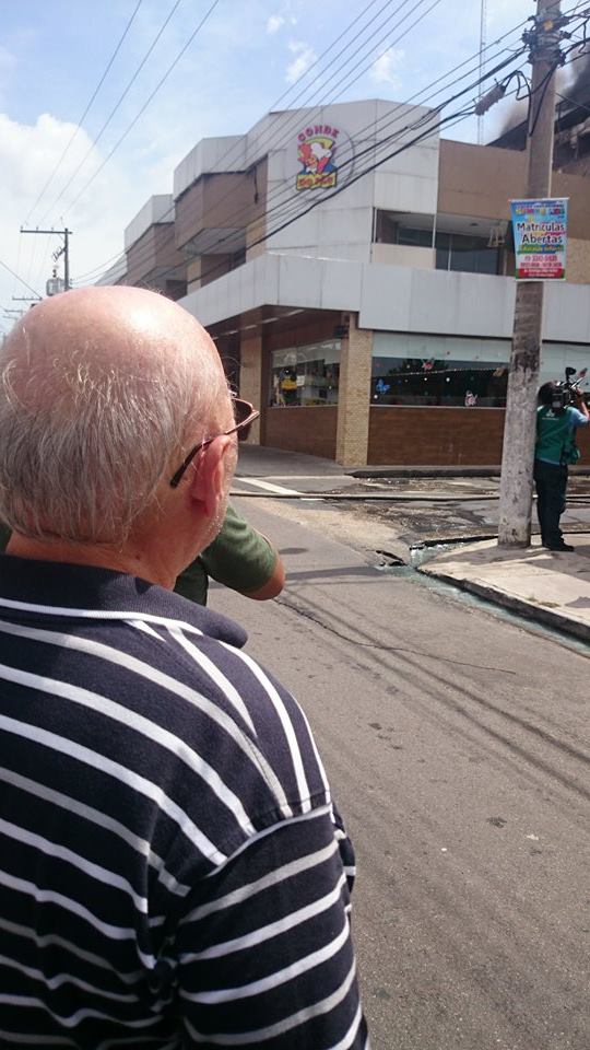 MANAUS - O proprietário da padaria Conde do Pão, Carlos Alberto Conde, assiste angustiado à destruição de seu estabelecimento pelo fogo. SAIBA MAIS;
