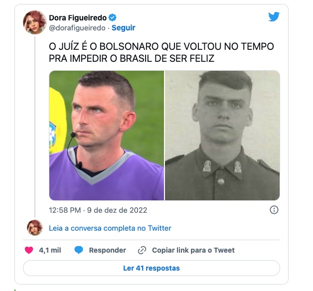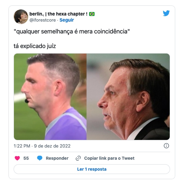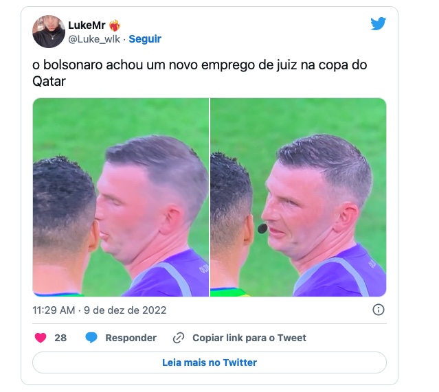 O presidente do Brasil, Jair Bolsonaro (PL), foi comparado nas redes sociais a um personagem do jogo entre a seleção brasileira e a Croácia, válido pelas quartas de final da Copa do Mundo do Qatar e que está sendo disputado nesta sexta-feira (9).