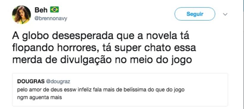 Durante as partidas, o Twitter fica recheado de comentários a respeito das divulgações noveleiras que não cabem na partida de futebol, e alguns prometem mudar de canal.