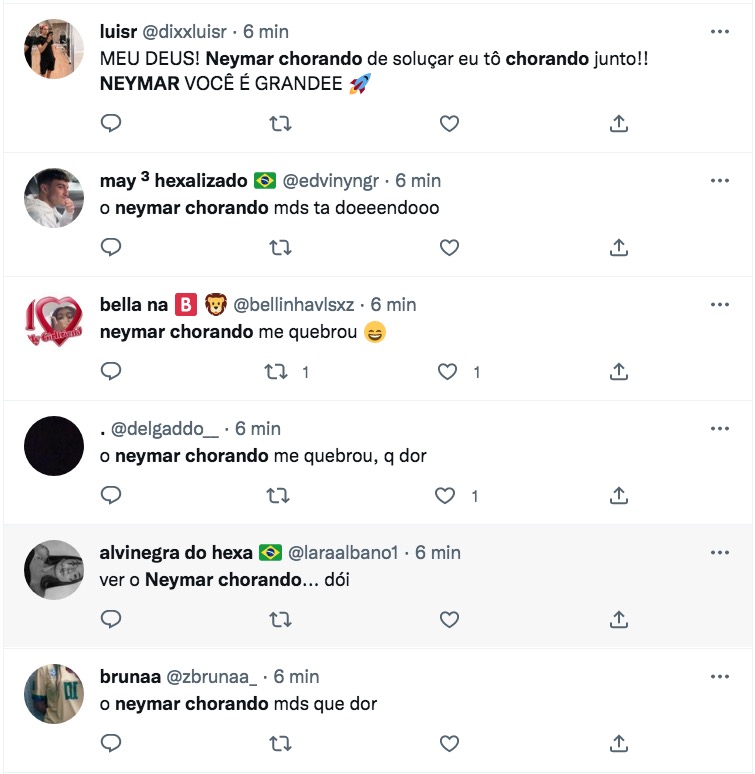Neymar Jr. não conseguiu segurar a emoção e chorou muito após o Brasil ser eliminado da Copa do Mundo. A seleção perdeu para Croácia nos pênaltis e Neymar nem mesmo chegou a cobrar.