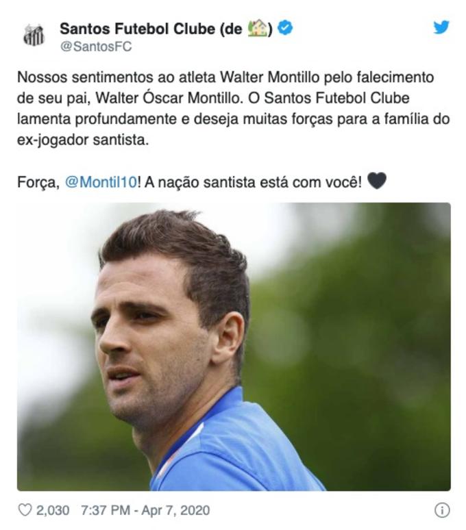 ASSUNTOS: coronavirus argentina, COVID-19, cruzeiro, pai e avo montillo, santos, universidade de chile, walter montillo, Esportes