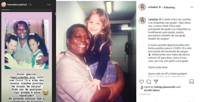 O elenco de Chiquititas (1997-2001) se mobilizou nas redes sociais para ajudar o ator Gésio Amadeu, que interpretou o cozinheiro Chico na telenovela, e está internado com Covid-19, necessitando de uma transfusão de sangue por ter diabetes.