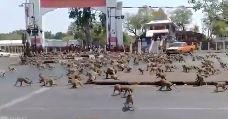 O caso aconteceu na cidade de Lopburi, na Tailândia. Moradores associam a cena à falta de turistas, que deixaram de visitar o local por temor ao coronavírus e consequentemente, deixaram de alimentar os macacos que costumam estar no local.