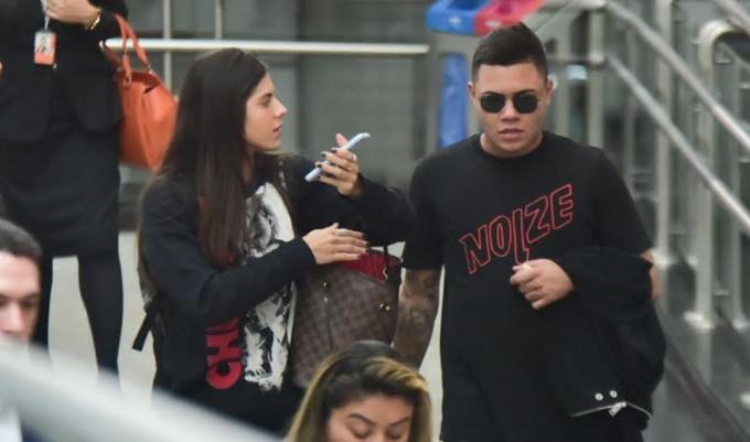 Felipe Araújo foi fotografado desembarcando no Aeroporto de São Paulo, na noite desta sexta-feira (30), acompanhado da nova namorada, a modelo Estella Defant.