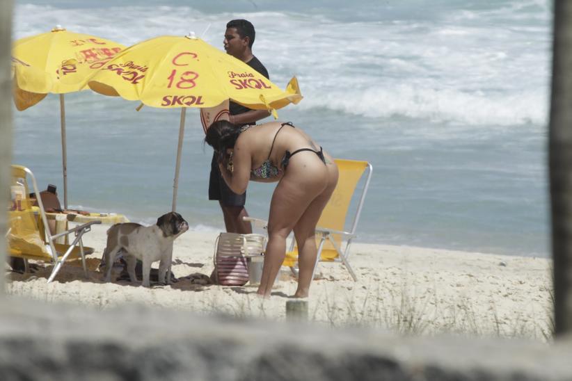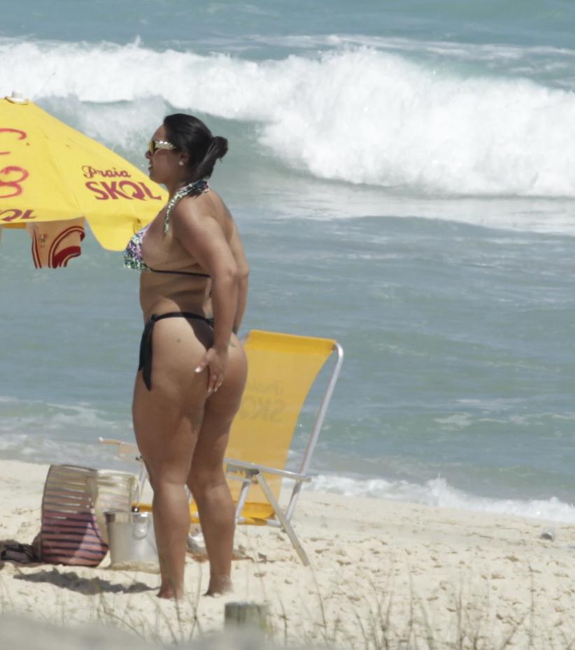 Andressa Soares, a Mulher Melancia, aproveitou a tarde ensolarada para se bronzear na Praia da Reserva, no Rio de Janeiro.