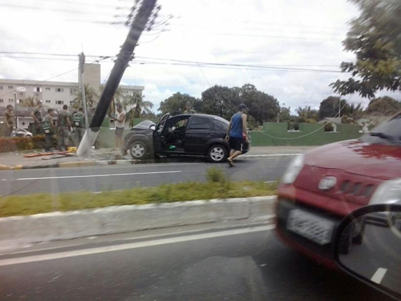 O acidente aconteceu em frente ao quartel do Batalhão de Infantaria da Selva (BIS), com o Fiesta Sedan, preto, de placas JXR-3524, que segundo informações de testemunhas, é propriedade um sargento do Exército que passou mal e perdeu a direção do veículo.