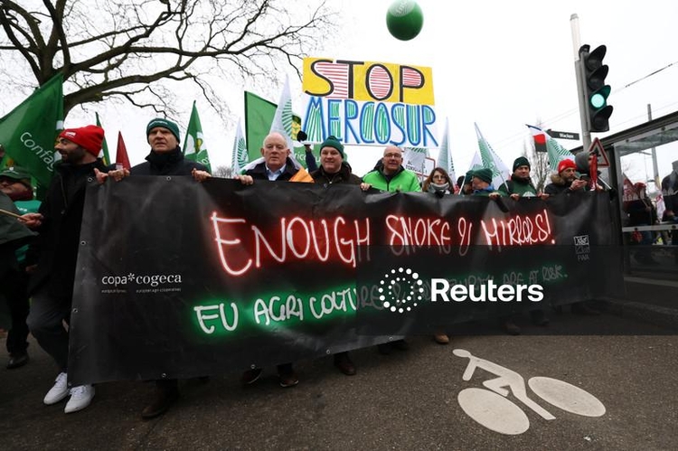 Os opositores, liderados pela França - maior produtor agrícola da UE - afirmam que o acordo aumentará drasticamente as importações de carne bovina, açúcar e aves baratos, prejudicando os produtores nacionais, que vêm realizando repetidos protestos.