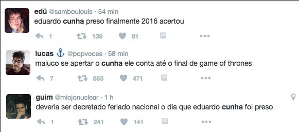 Assunto mais comentado do Twitter, Cunha é alvo não só da Polícia Federal como também dos internautas que estão fazendo memes com a situação do político.