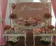 A decoração foi cor de rosa cheia de ursinhos de pelúcia.