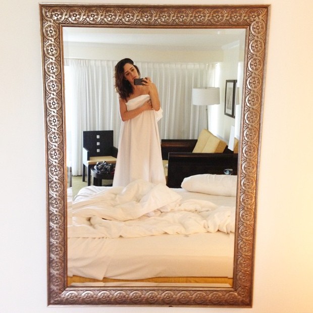 Fernanda Vasconcellos compartilhou imagens mais íntimas neste sábado (21) com seus seguidores no Instagram. Em uma das fotos, a atriz aparece cobrindo o corpo com um lençol em pé na cama. 'Bonjour', escreveu na legenda.
