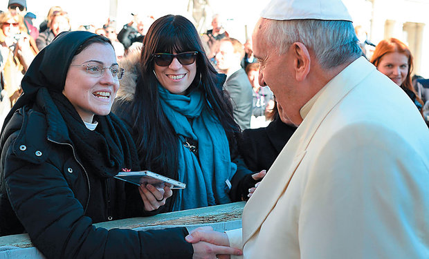 A ligação finalmente chegou e a irmã Cristina pode conhecer o papa Francisco e lhe entregar o disco pessoalmente.