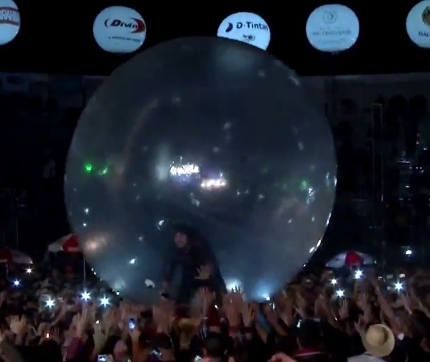 Luan Santana sai rolando por cima de fãs com uma bolha gigante