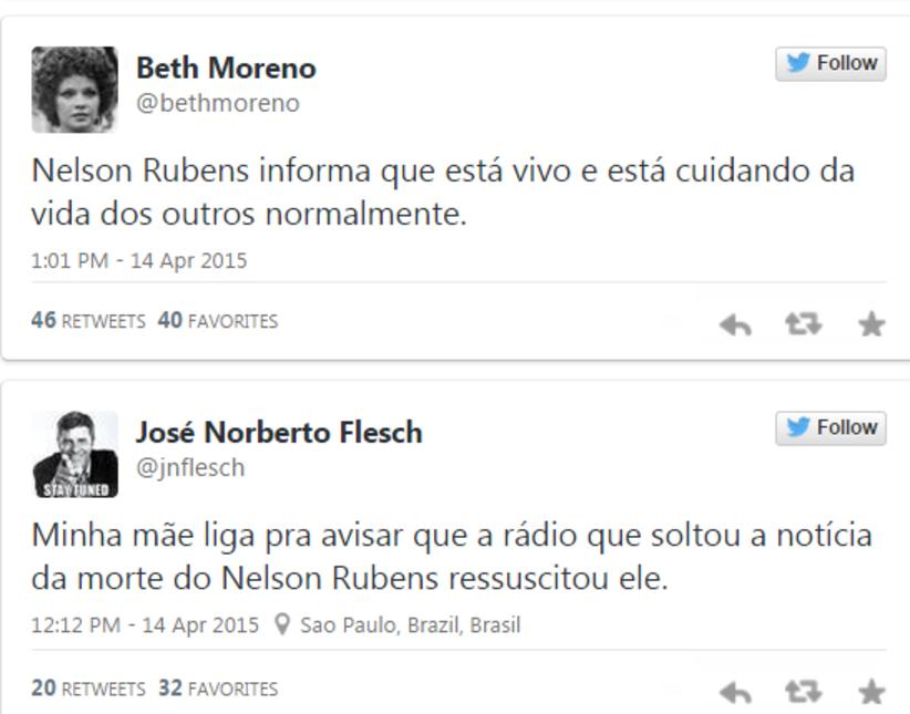 Morte de Nelson Rubens dá o que falar no Twitter