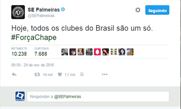 A notícia gerou grande comoção e promoveu uma verdadeira corrente de apoio por parte dos clubes brasileiros. Segundo o site Gazeta Esportiva times como Palmeiras, Flamengo, Santos, Corinthians, Vasco, Atlético Mineiro e Avaí mudaram a foto de perfil das redes sociais para uma foto oficial de luto com o escudo da Chapecoense.