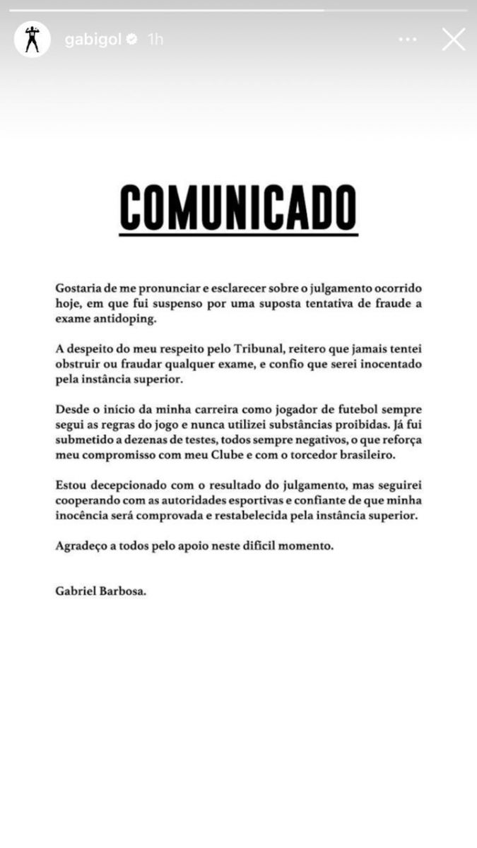 Nas redes sociais, o atleta divulgou uma nota e expressou confiança em sua inocência.