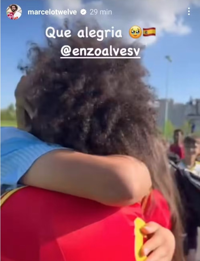 De folga, o jogador Marcelo, do Fluminense, e a esposa, Clarice, viajaram para a Suíça para um amistoso do seu filho mais velho, Enzo Alves, pela seleção sub-15 da Espanha que aconteceu hoje (3). O garoto chegou a marcar dois gols na goleada por 6 a 1 sobre os donos da casa.