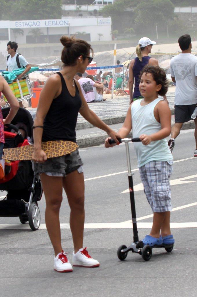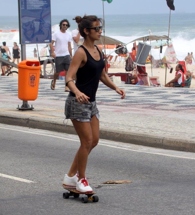 Enquanto Ronaldo andou de Bike e o filho de patins, Paula Morais mostrou suas habilidades no skate.