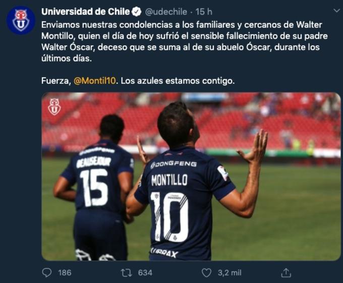 O meia argentino Walter Montillo, jogador da Universidad de Chile com passagens por Santos e Cruzeiro, perdeu o pai e o avô nos últimos dias, com os falecimentos sendo suspeitos para Covid-19. Walter Óscar Montillo, de 60 anos, pai do jogador, faleceu na última terça-feira (7). Já o avô, Óscar, de 91 anos, faleceu dias antes. Ambos faleceram na Argentina.