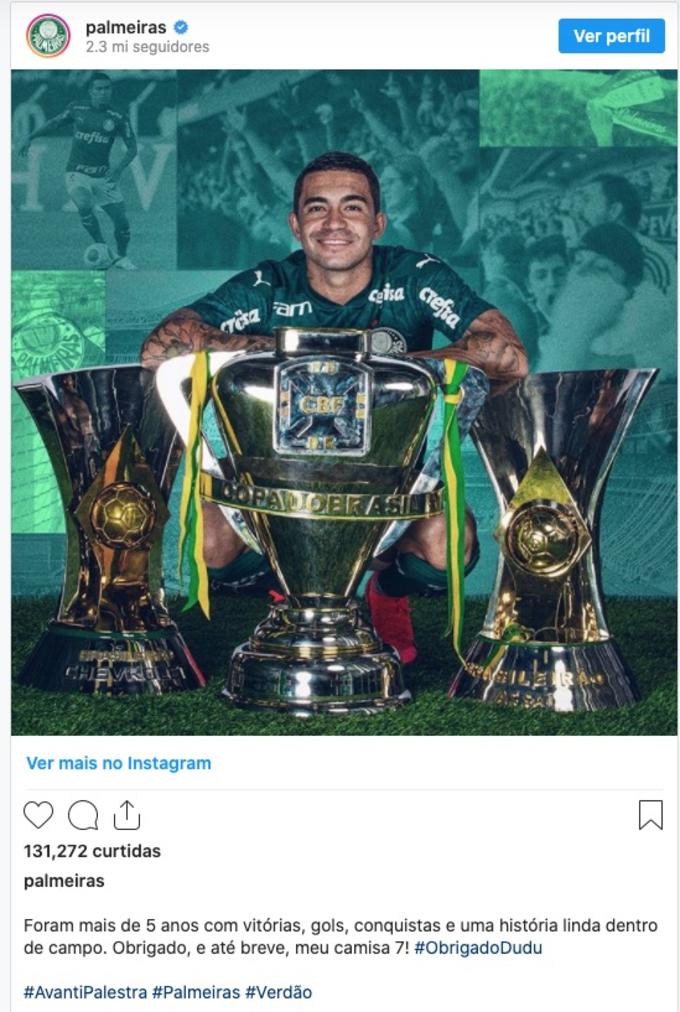 No Instagram, o Palmeiras publicou uma mensagem de despedida.